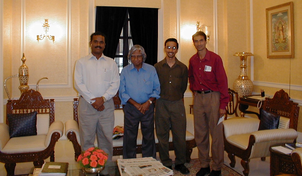 Two of the president's graduate students: Shiva Kumar on the left and George Athappilly on the right. At the time of the meeting, Shiva Kumar was developing a low-cost cochlear implant for the deaf while George was pursuing his goal of using ideas from bioengineering, neuroscience, and computing to help the mentally-disabled.